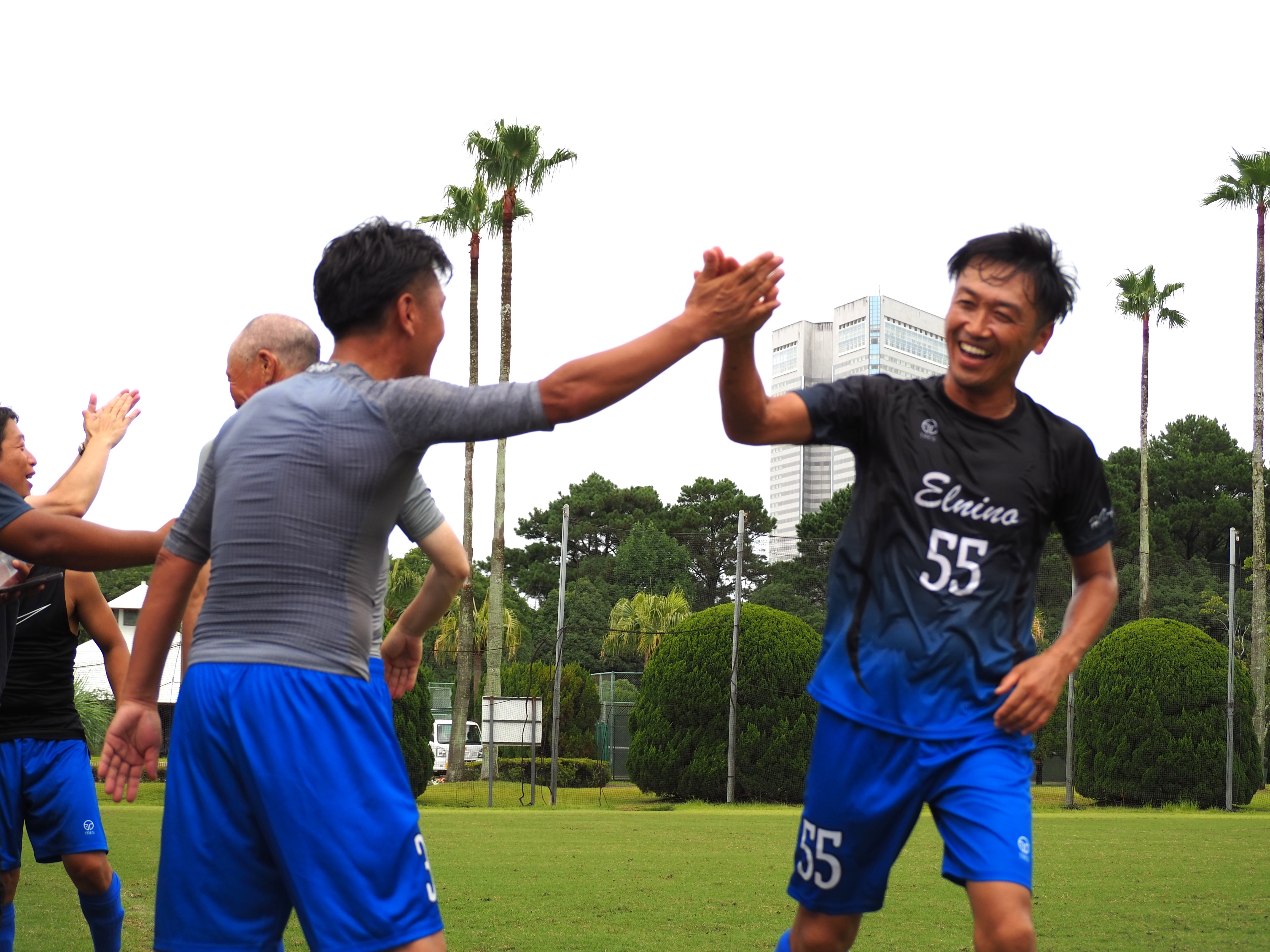 | コメント | この写真はシュートを決めた後に仲間のもとへ行き、ハイタッチをしているところです。県外から来た人が宮崎でこんな試合があったとわかるように、背景にシーガイアが入るように撮りました。仲間との絆を感じられる良い写真が撮れたと、とても気に入っている一枚です。 |