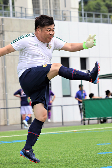 | コメント | キーパーの方の表情が豊かで全力でサッカーを楽しんでいるのが伝わってきたので、この方がボールを蹴った瞬間にシャッターを切り、この写真を選出しました。この写真を見て感じられる「躍動感」と「表情」がポイントです。 |